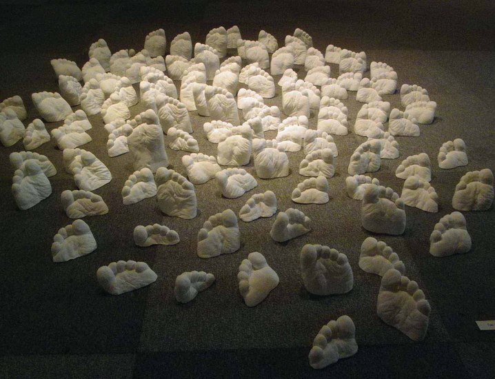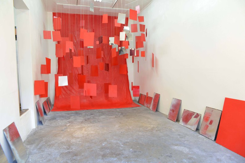 私は最近、工業的に大量生産された後廃棄される素材を使ってインスタレーションしてきた。ありふれた物を使って見慣れた風景を変えることが目的だった。今回の展覧会ではその対極の物を使う。天然素材を手間をかけて材料化しそれをもとに一つずつ手仕事で制作したものを使ってインスタレーションを行う。ご協力いただいたのは、熊本県水俣浮浪