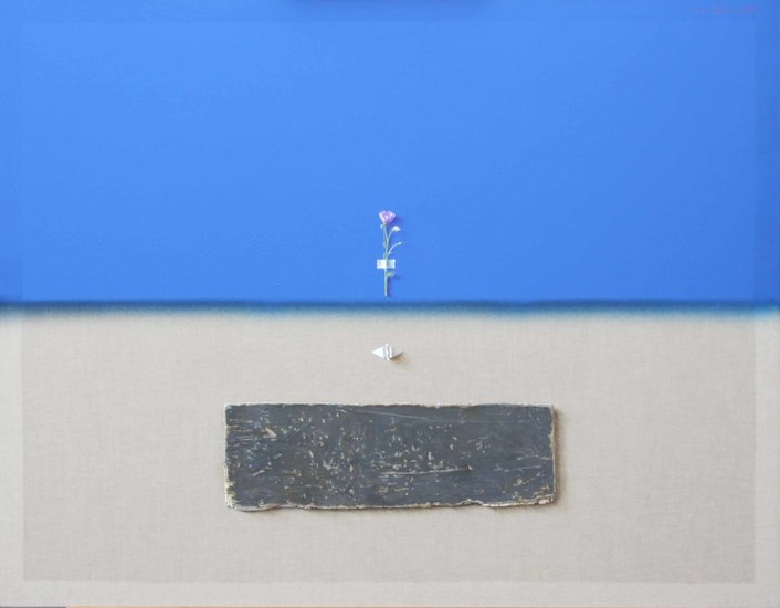 抽象空間(高度情報化社会)と日常の視覚(トロンプ・ルイユ)を同一画面に描き、二つの世界を同時に生きている現実を、表象できればと考えています。